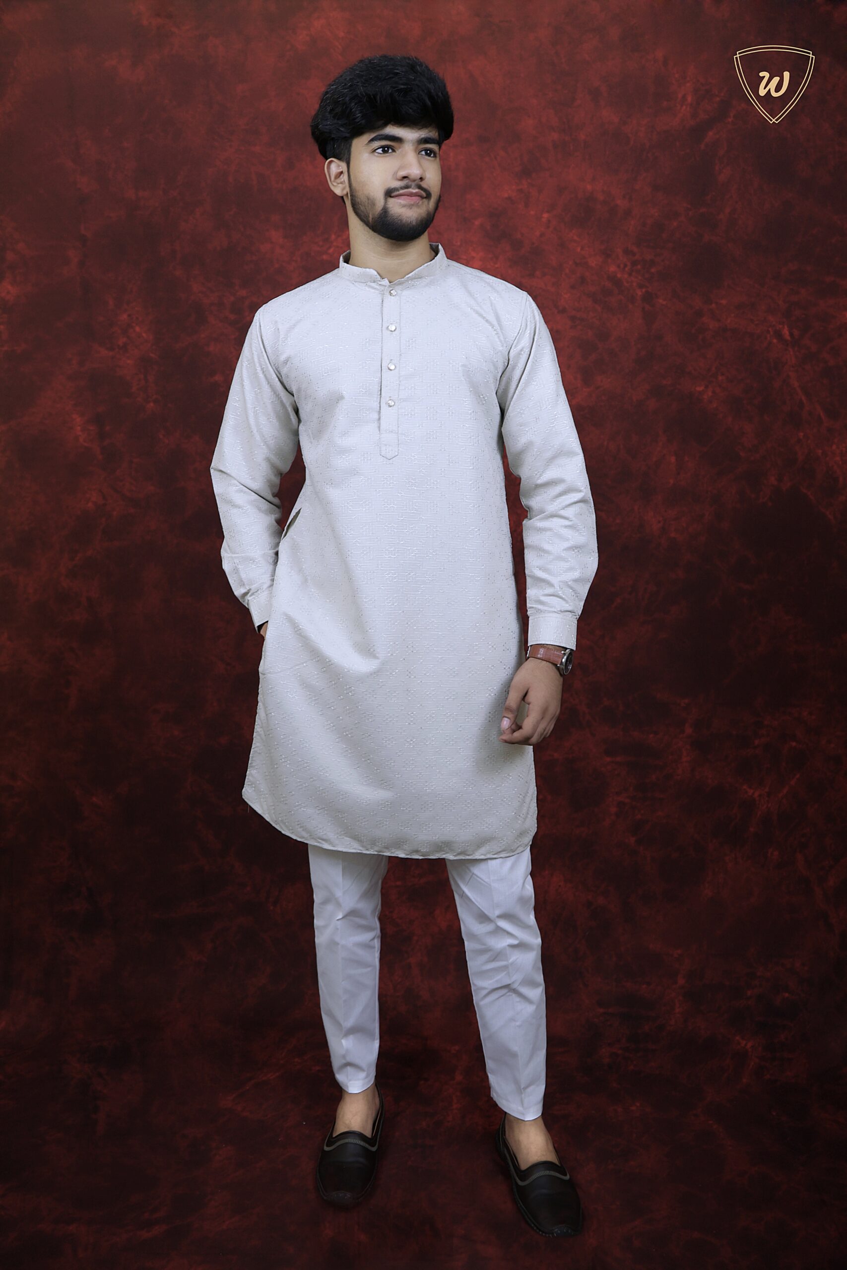 Redefine traditional style with the Westaura Beige Thread Work Kurta Pajama Set. Showcasing intricate thread embroidery and a distinctive -inspired band collar, this premium pure cotton set is perfect for weddings, festivals, and special gatherings.