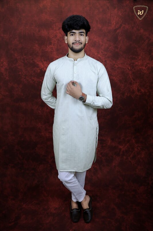 Style: Straight-fit kurta with button placket and white pajama