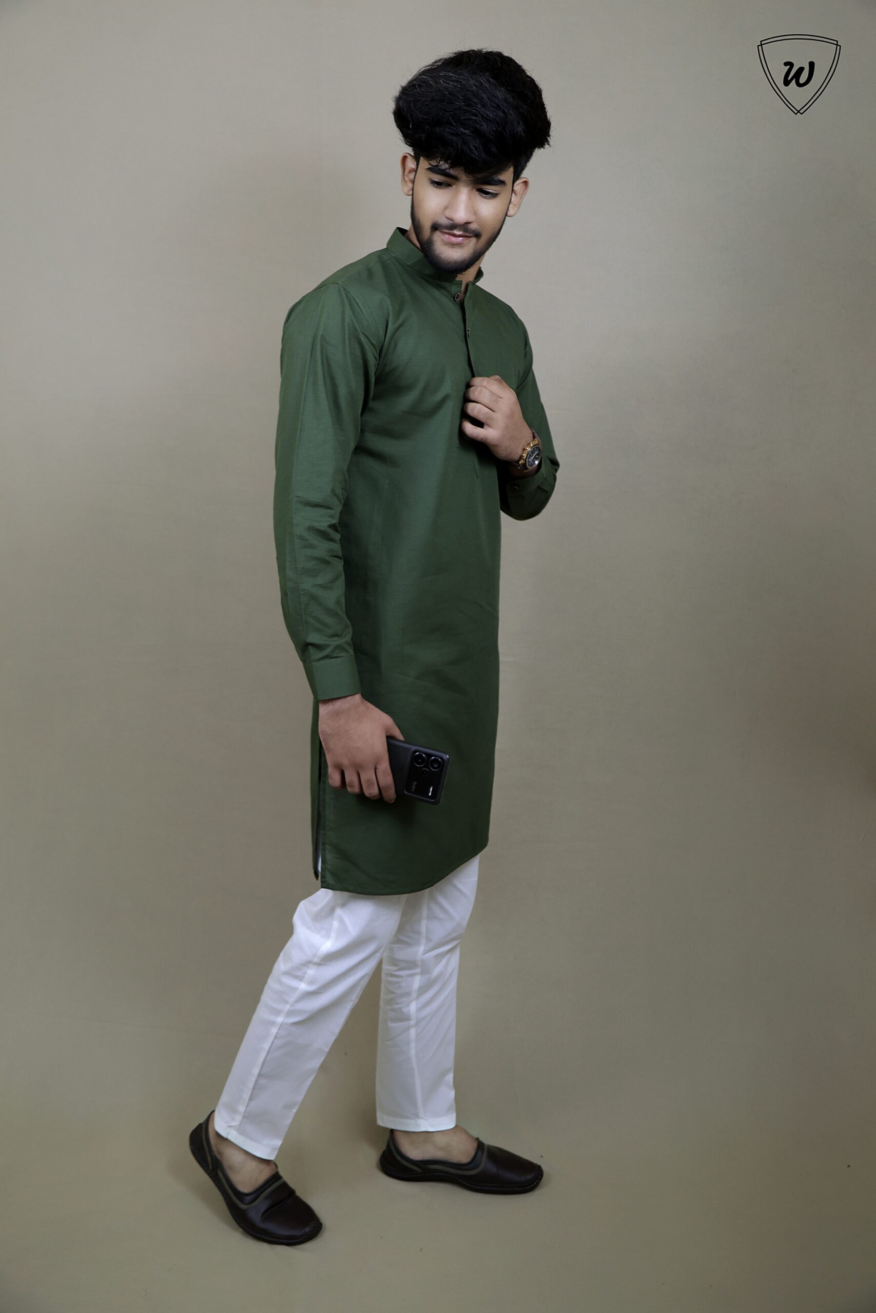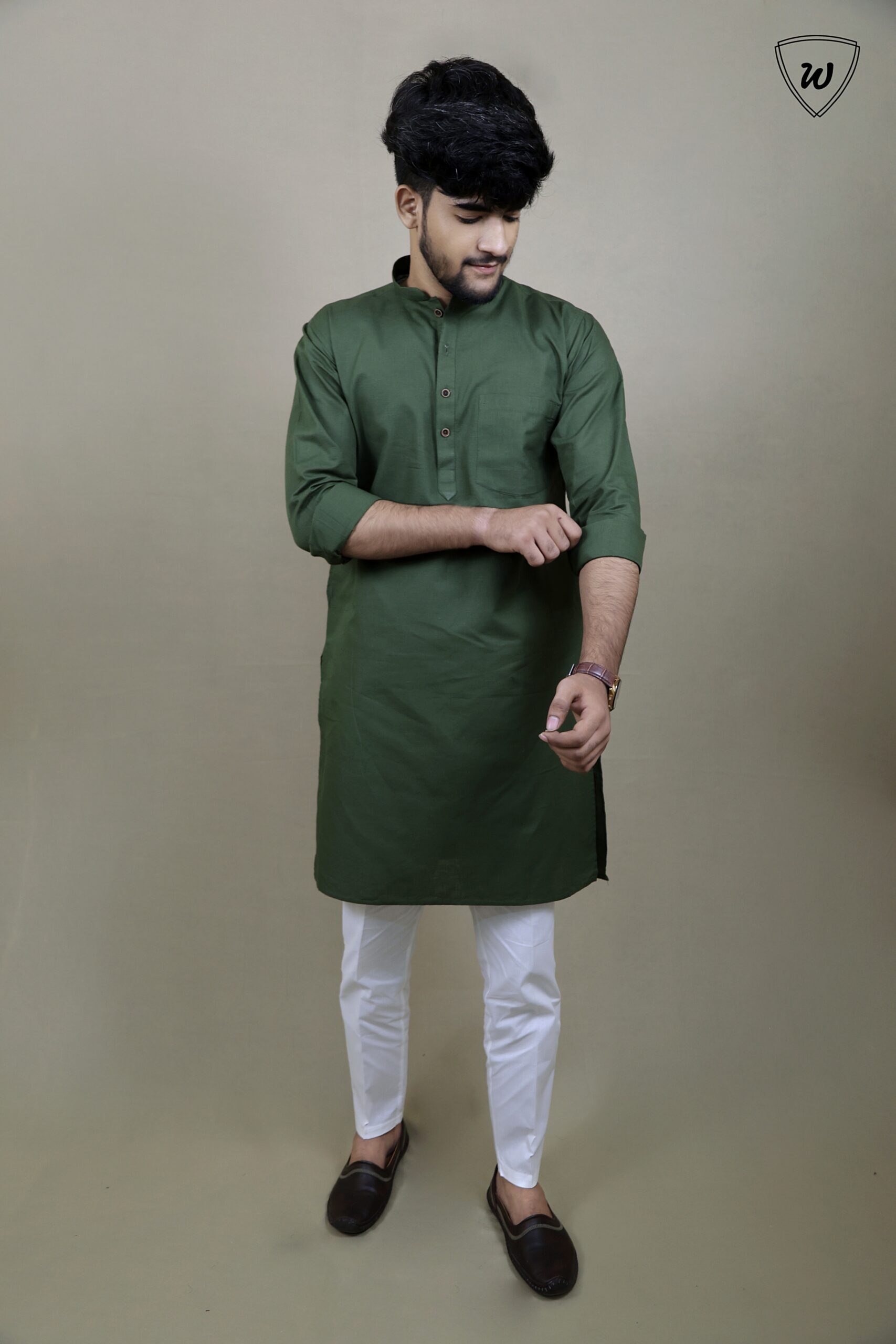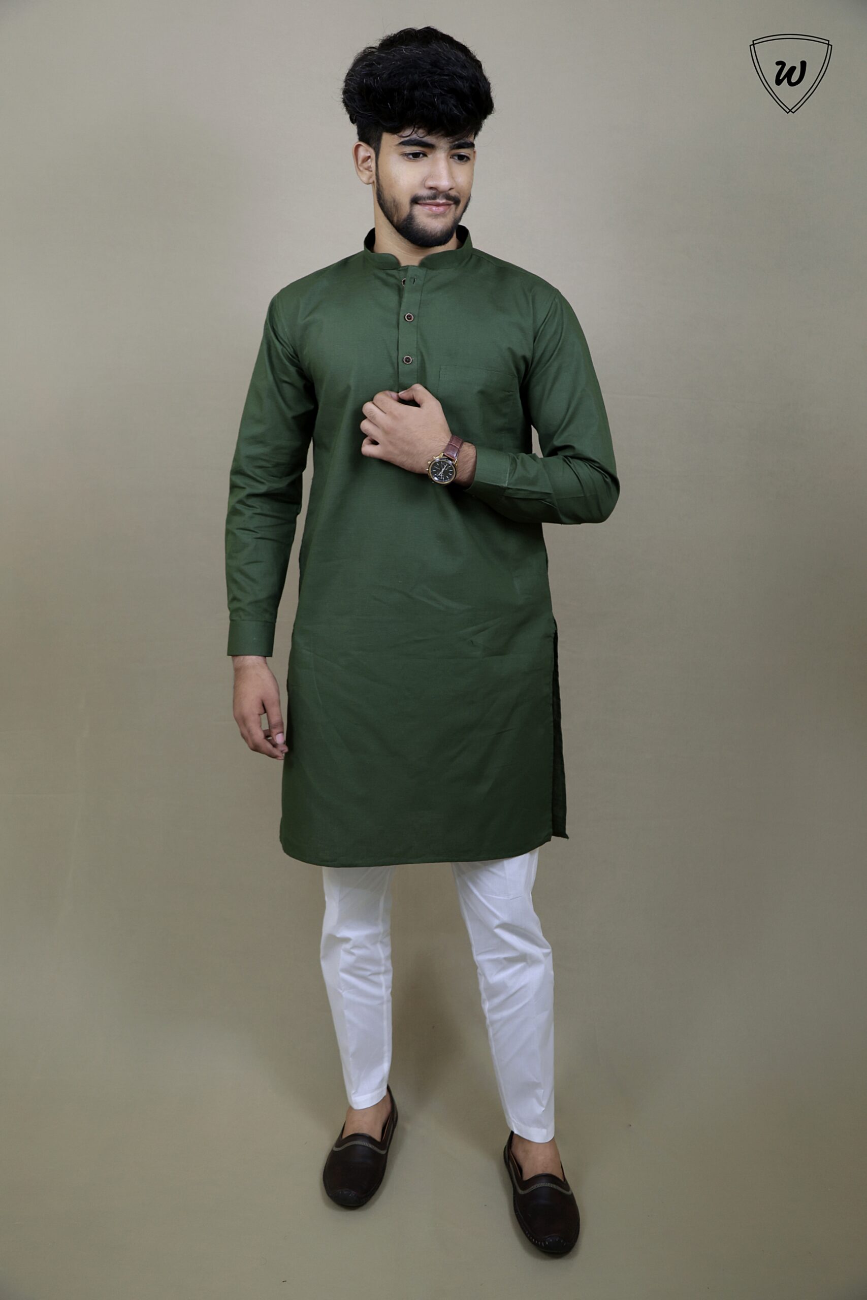 Upgrade your festive look with this dark green kurta pajama set—a must-have for elegant celebrations and special moments.