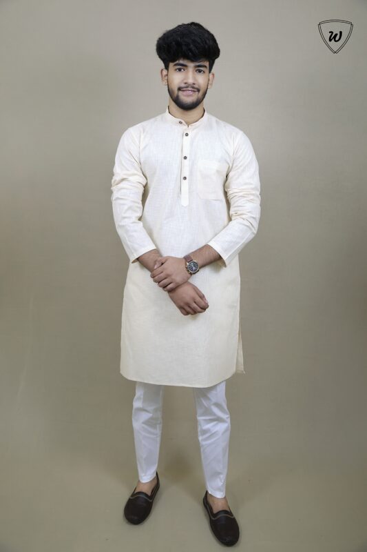 Style: Classic straight-cut kurta with matching White pajama