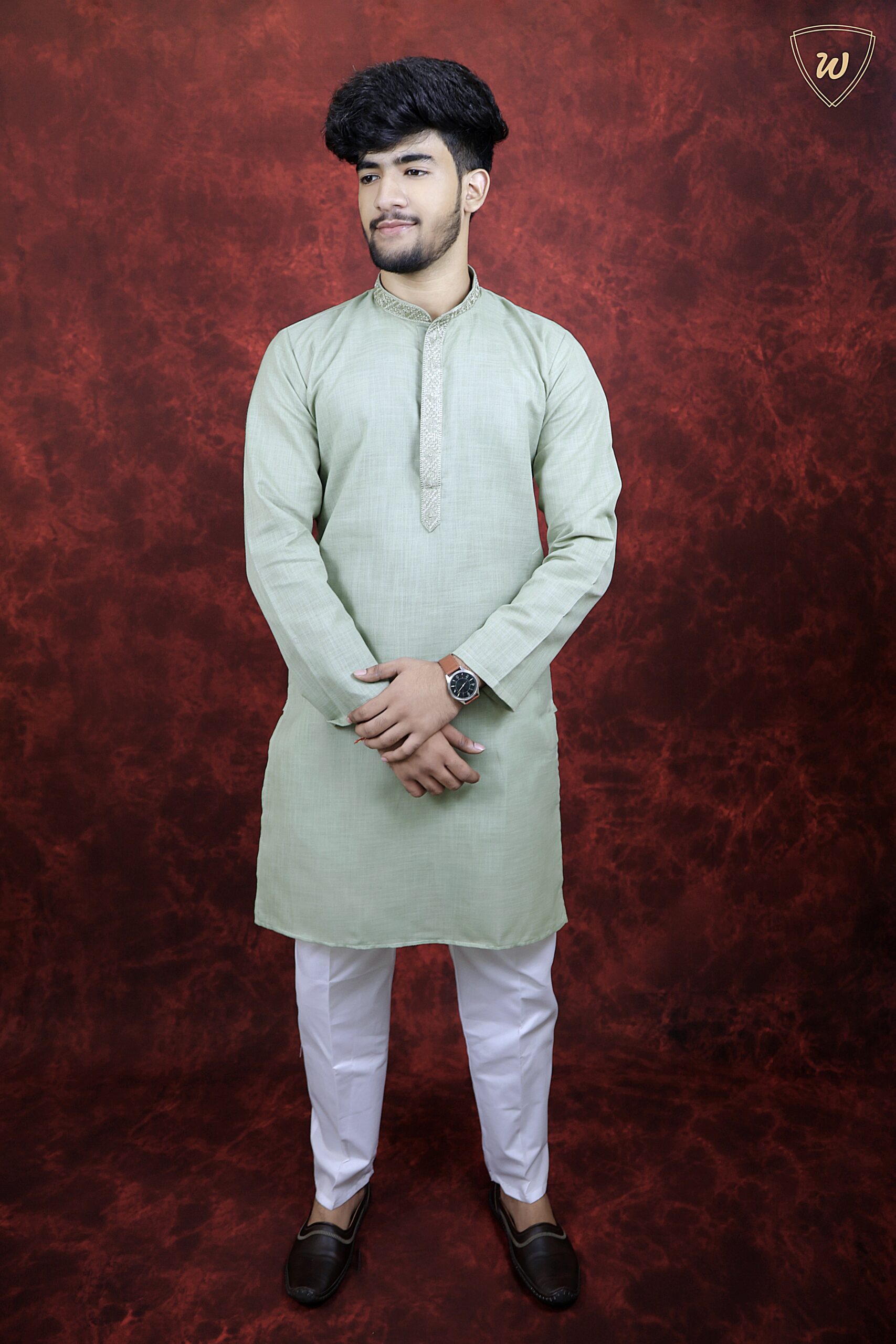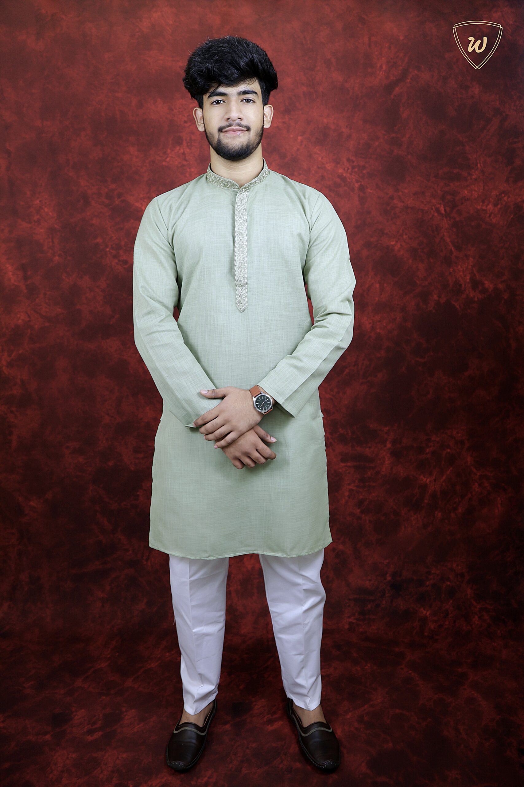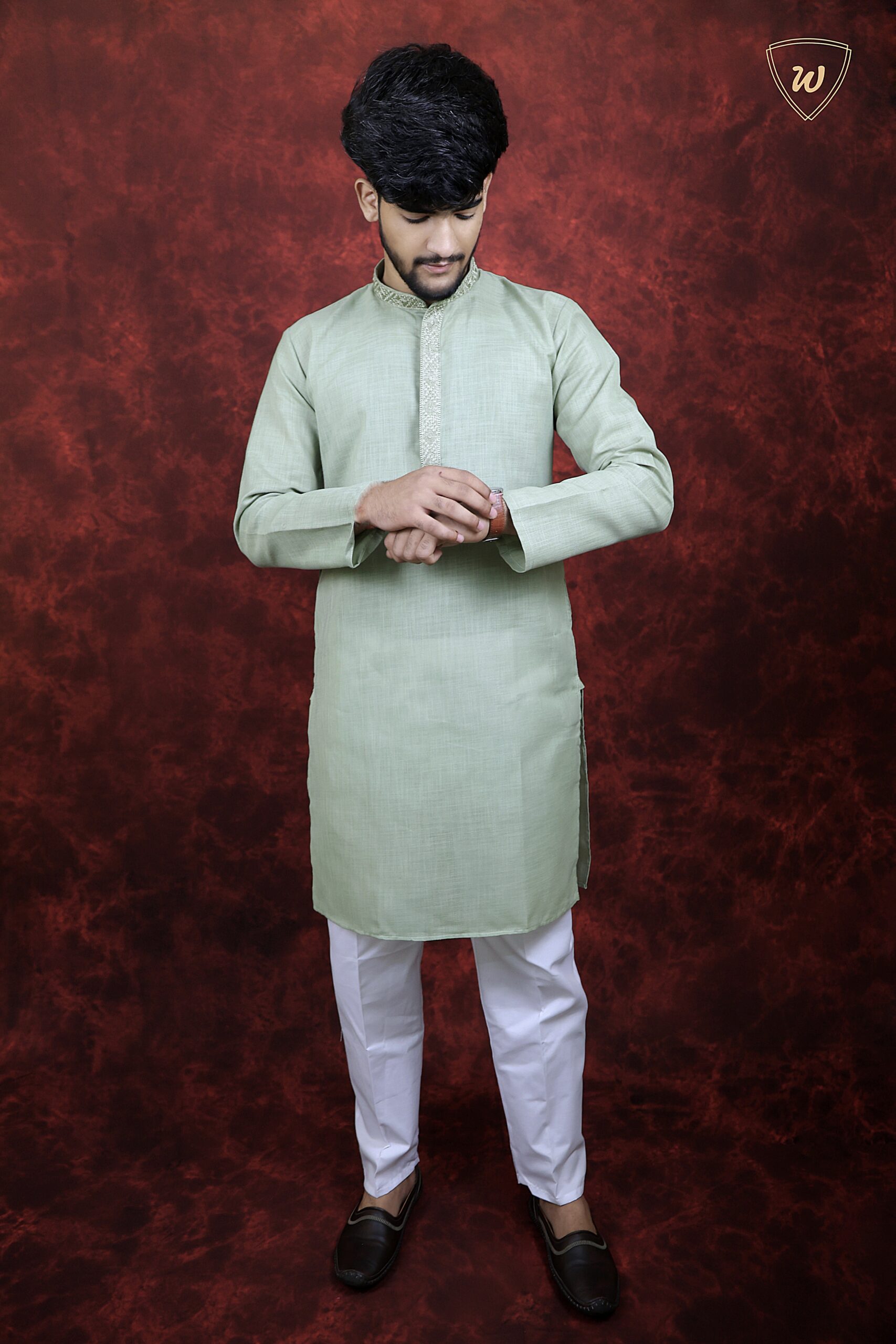 Men’s Ethnic Wear Pista Green Kurta Pajama Set