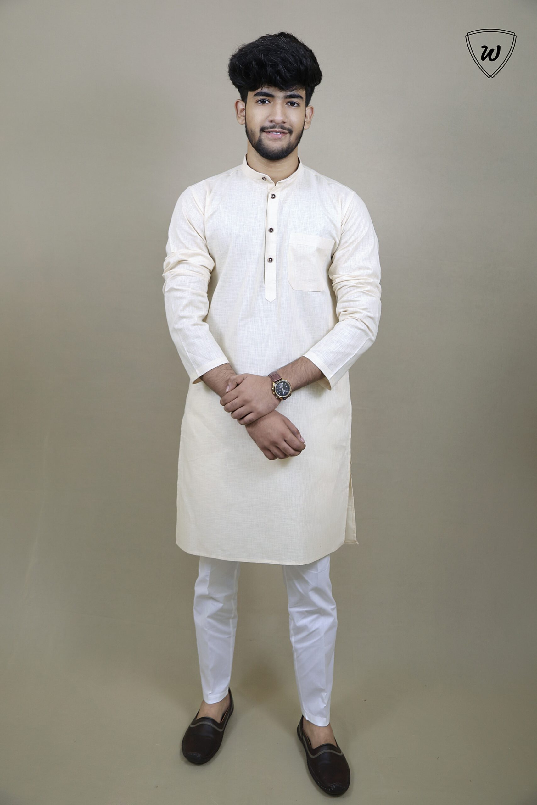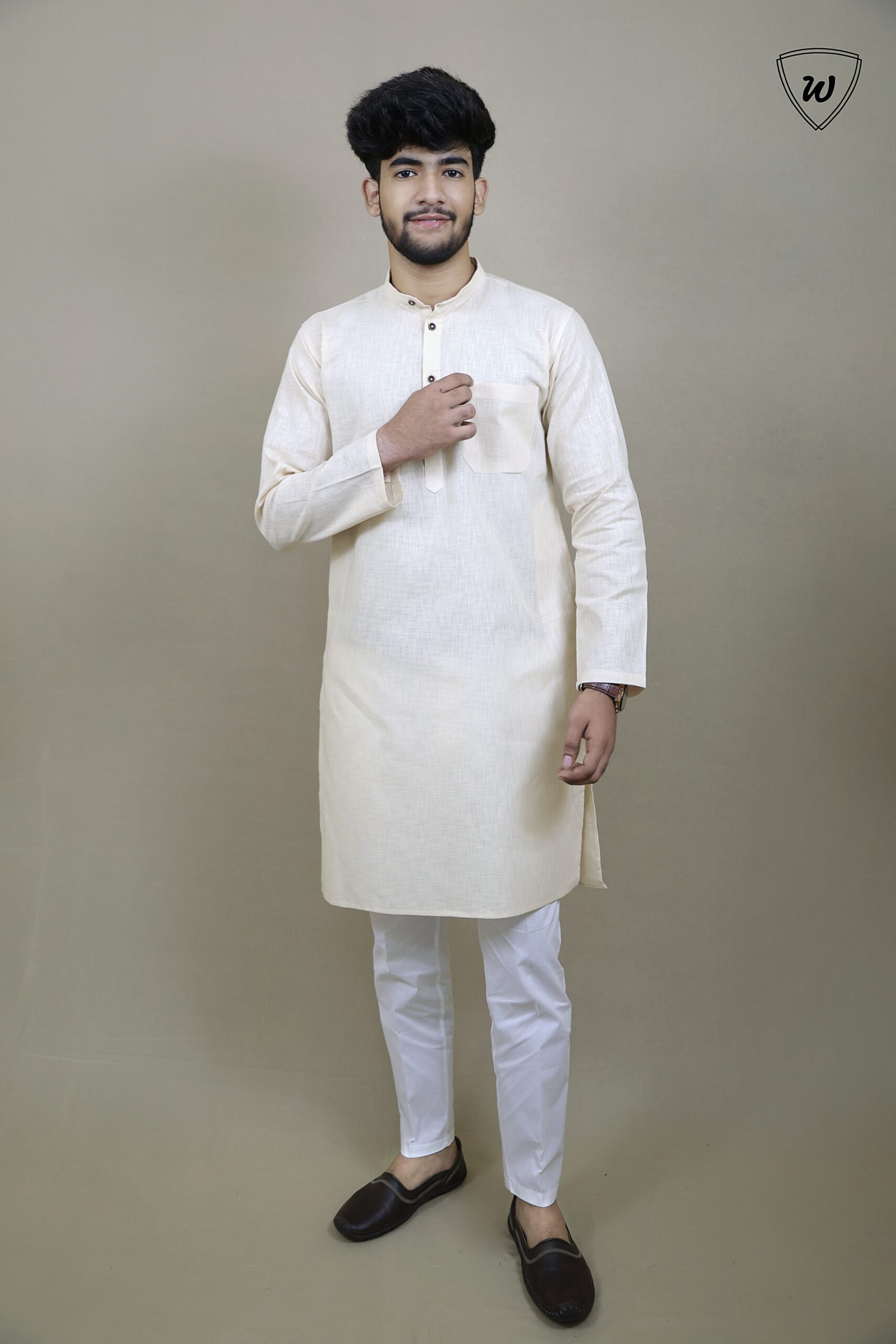Refresh any occasion with the Westaura Luxe Pure Linen Kurta Pajama Set in a trendy Cream  shade. Made for comfort and minimalism, this airy linen kurta stands out for weddings, summer parties, and stylish celebrations.