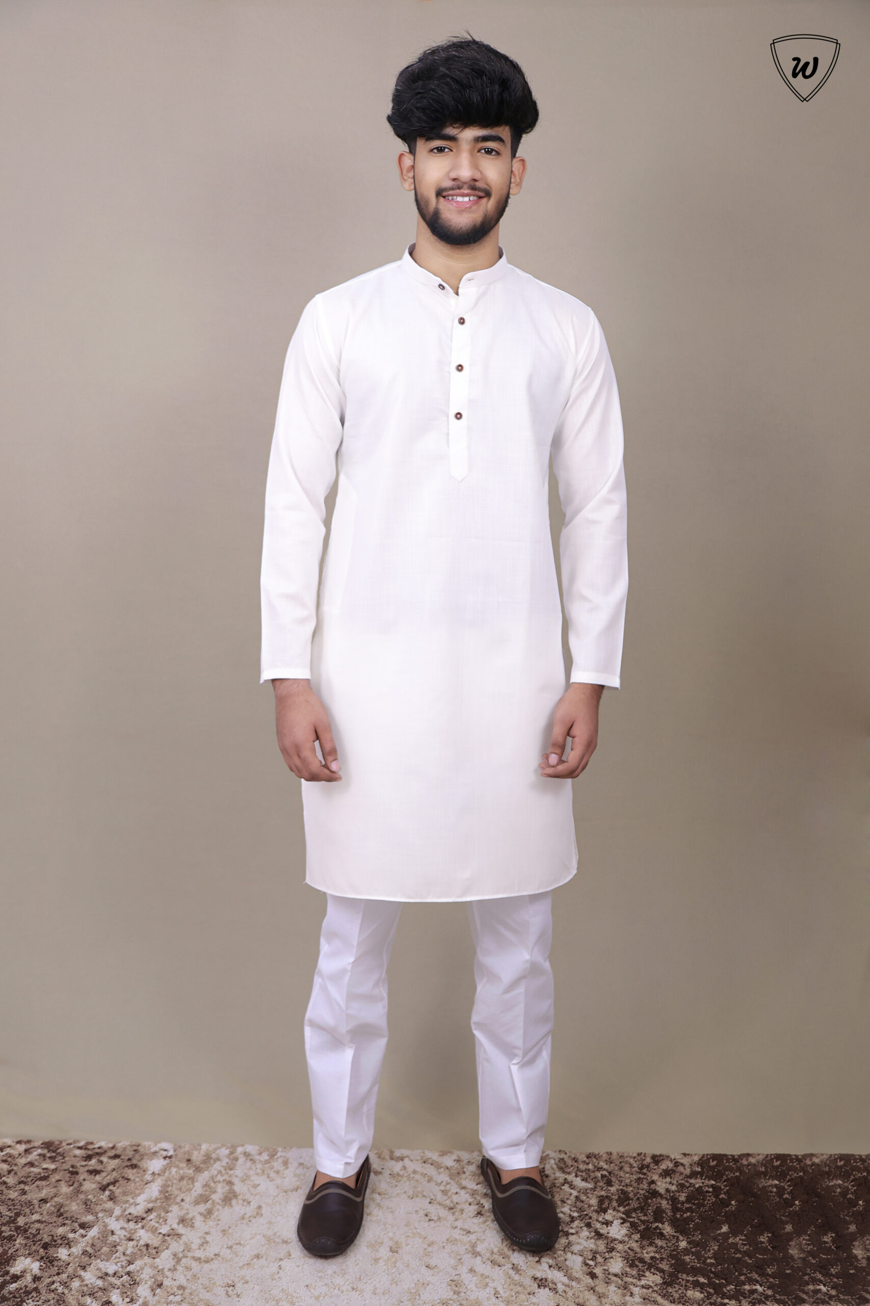 Color: Bright white kurta with matching white pajama
