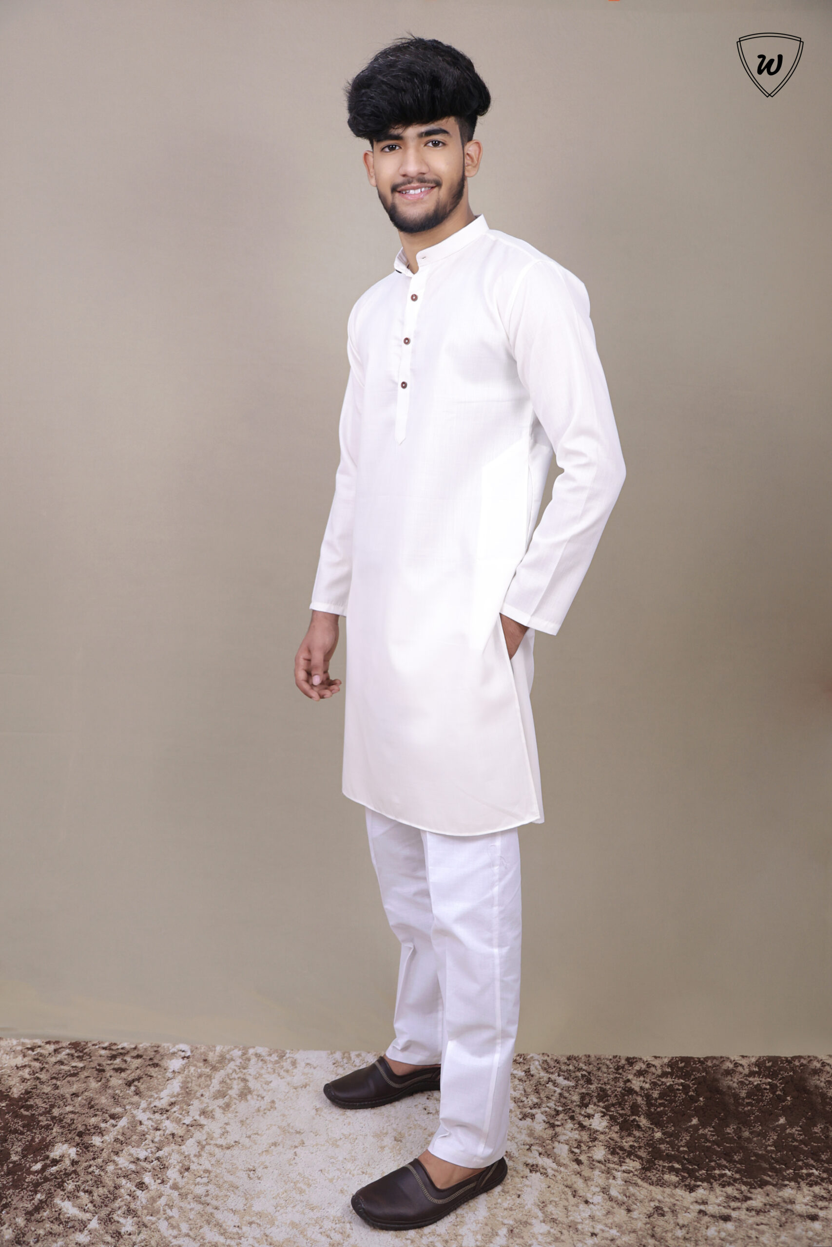 Step into refined simplicity with the Westaura Men’s White Aura Blended Cotton Kurta Pajama Set. Inspired by clarity, peace, and effortless style, this set features an ultra-light blended cotton kurta in crisp white with a coordinated white cotton pajama. The polished stand collar, wood-look buttons, and contemporary fit create a modern classic—ideal for weddings, puja, Eid, day events, or urban get-togethers.